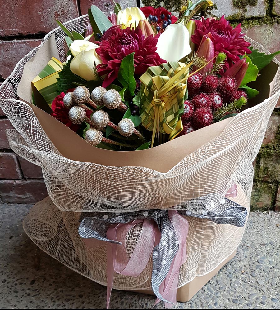 A classic. Stunning New Zealand roses handtied with foliage and giftwrapped. Choose from mixed colours or all one colour.