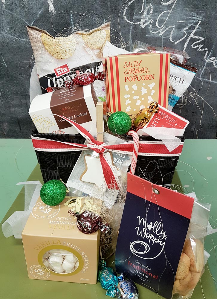 A selection of savoury and sweet gourmet items. We can send this on its own or add flowers for an extra special gift.